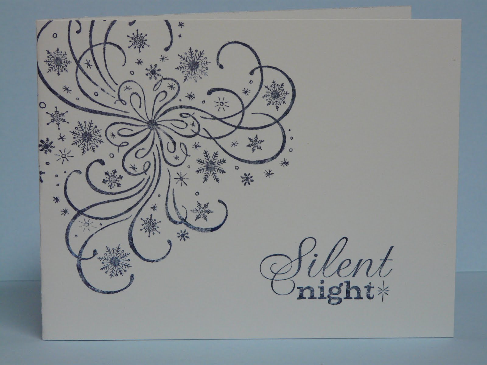 Since I have finally gotten some decent white cardstock for one-layer cards, I decided to join this week. After going through my stamps, I settled on my new Heartfelt Creations Snowflake Medley and the Christmas Expressions sentiment from CHF. It screamed at me to be done in navy. The first card I tried stamping using white ink and clear embossing powder. Very subtle and pretty but almost too subtle. The second card was done in navy with Versamark and white embossing powder. I love the pop but was a little sad that some of the beautiful snowflake details were lost.